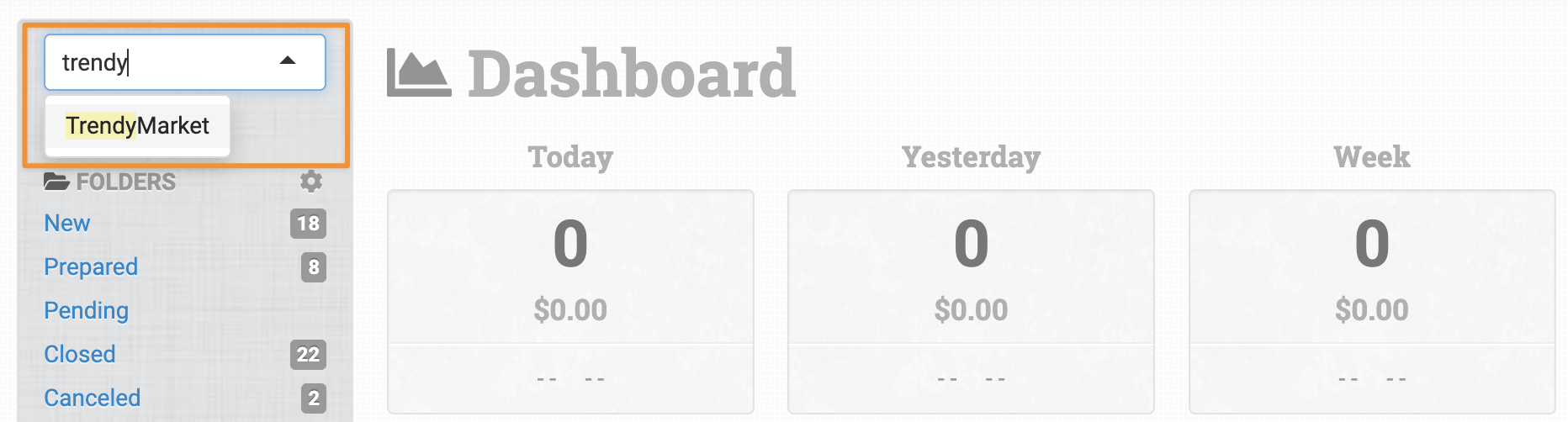 If you have lots of stores on your account, you can also search for the specific store name from the dropdown.