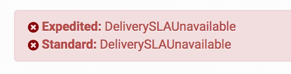 The message from MCF will show you which shipping methods, of the three they use (Standard, Expedited) are unavailable for the address on the order, saying DeliverySLAUnavailable: