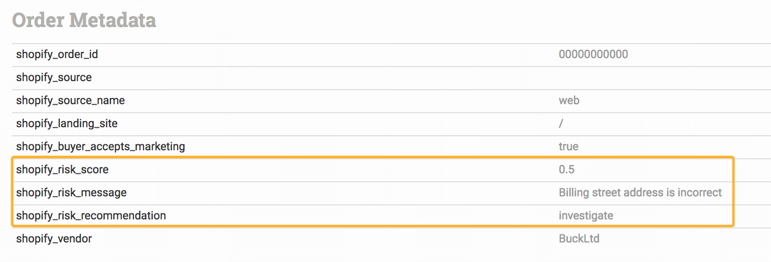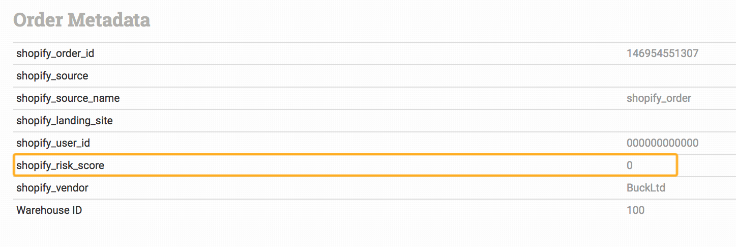 Once enabled, Order Desk will pull in any risk information from Shopify on potentially fraudulent orders and will store it in the Order Metadata.