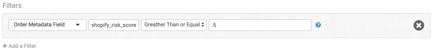If Order Metadata Field shopify_risk_score Greater Than or Equal .5