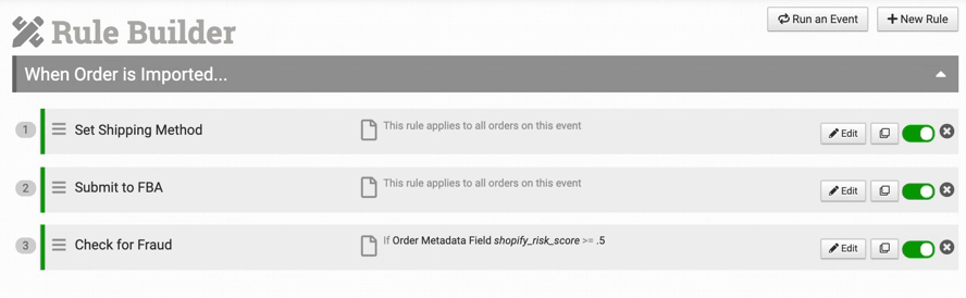 If you do have rules, make sure none of them are automatically sending all orders (or all Shopify orders) to a fulfillment service or sending out a dropship email. Any rules doing this will need a filter to prevents the potentially fraudulent orders from being automatically sent for fulfillment.