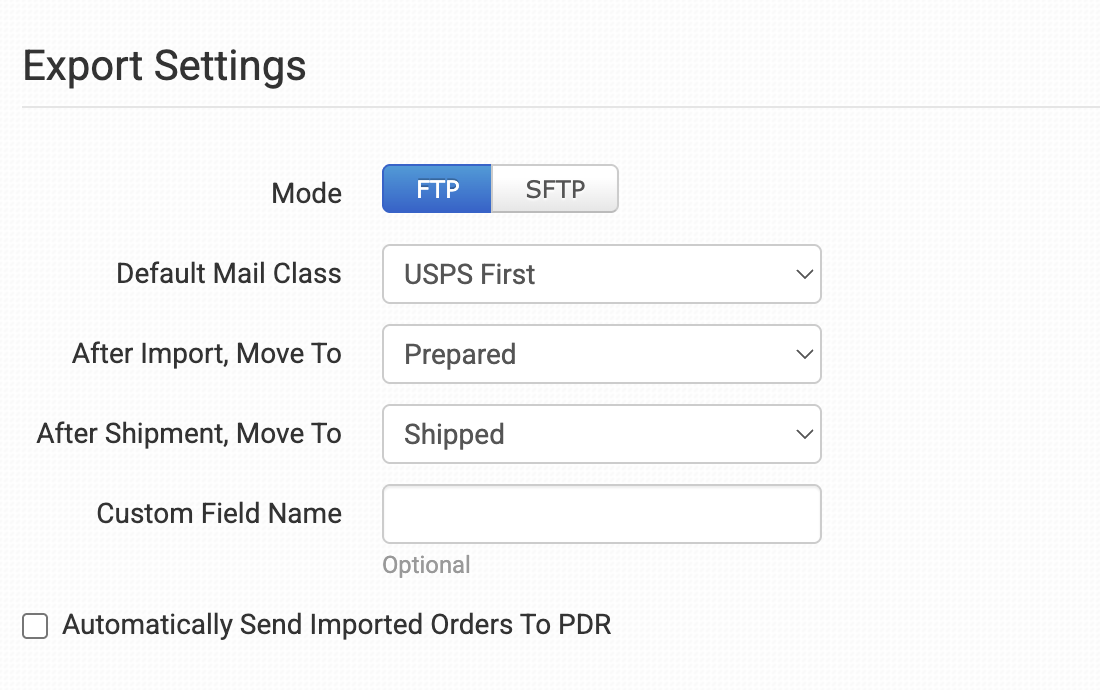 Select this setting only if all orders will be sent to PDR. If any orders will not be sent, or if you need a delay between when an order is imported into Order Desk and when it is sent to PDR do not select this.