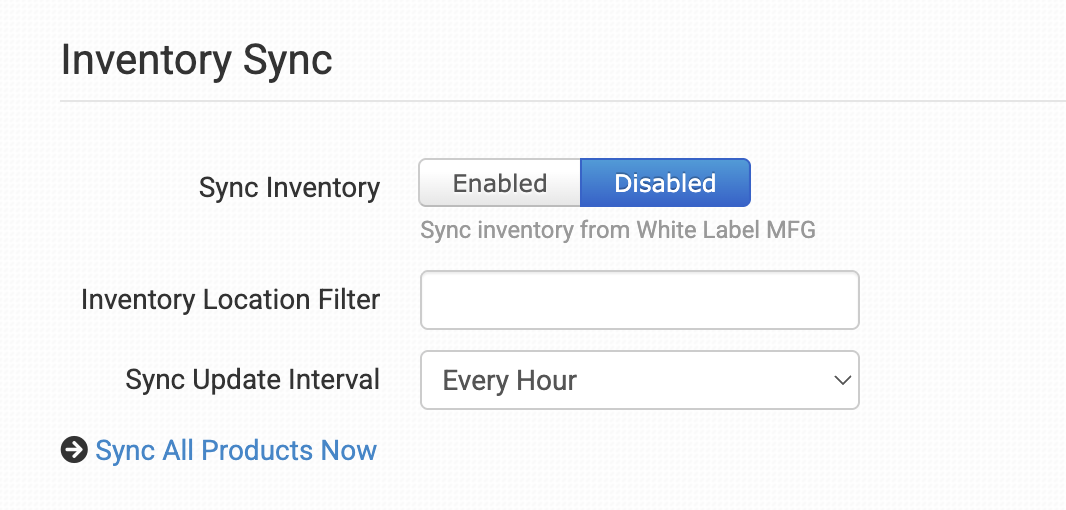 Enable if you want your inventory stock counts to be pulled in from White Label MFG. For more information, see the How to Work with Inventory Counts guide.