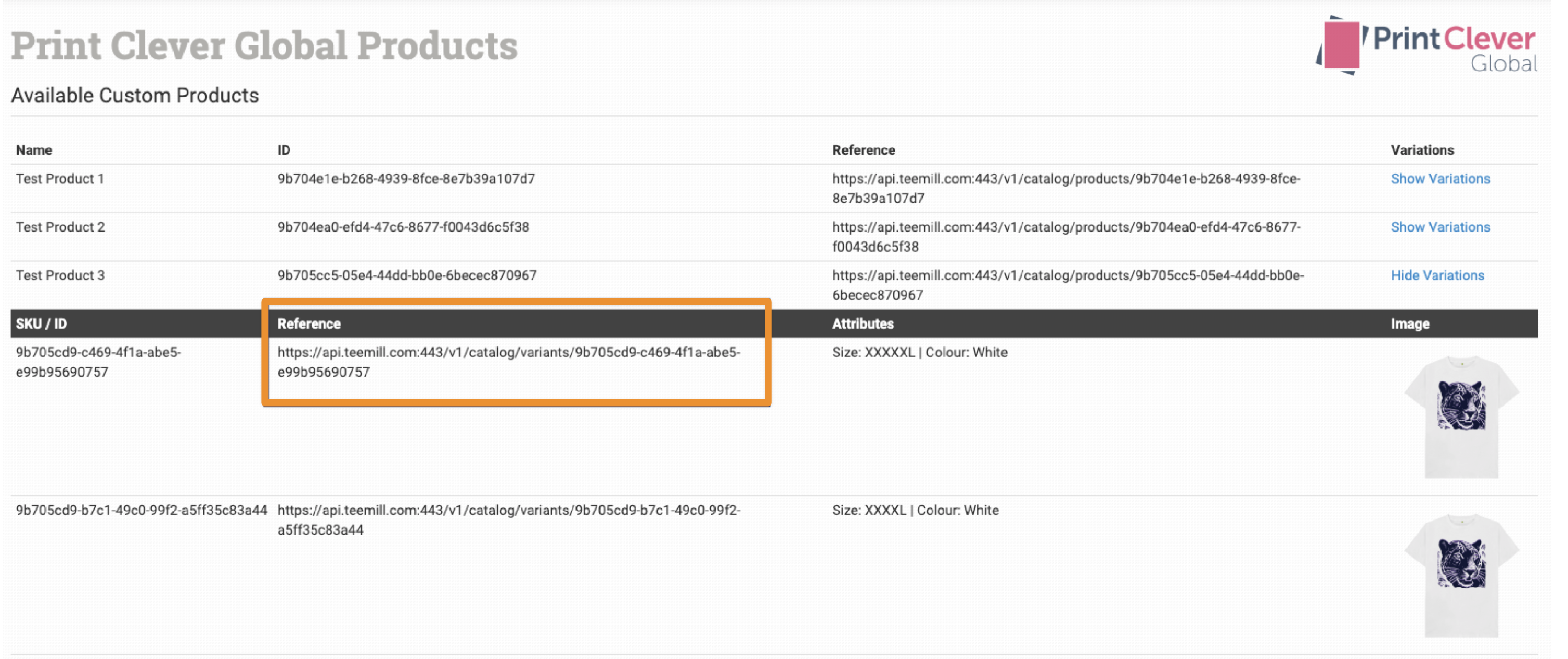 print_sku | Print Clever Global's product code/SKU for the item. |