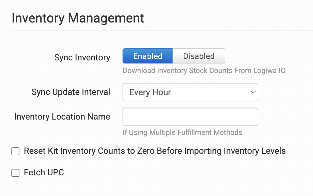 Enable if you want your inventory stock counts to be pulled in from Logiwa IO.