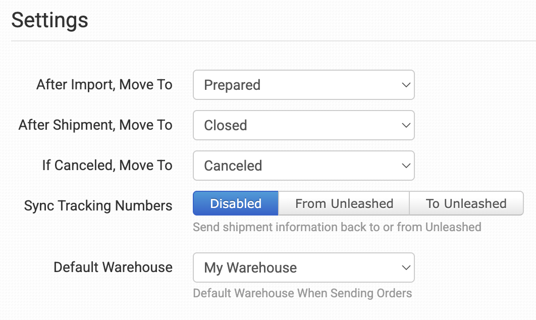 After you’ve connected Unleashed to Order Desk, you can customize how orders move through your store using the following settings: