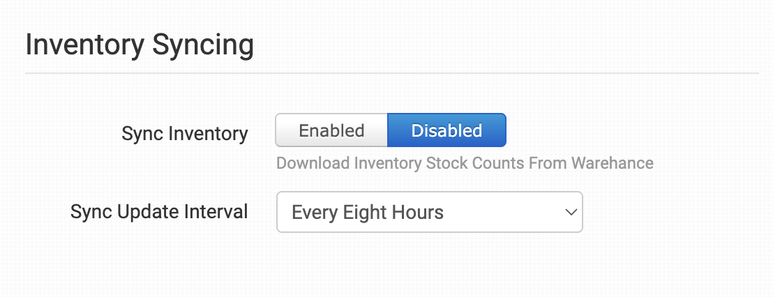 Enable if you want your inventory stock counts to be pulled in from Warehance. For more information, see the How to Work with Inventory Counts guide.