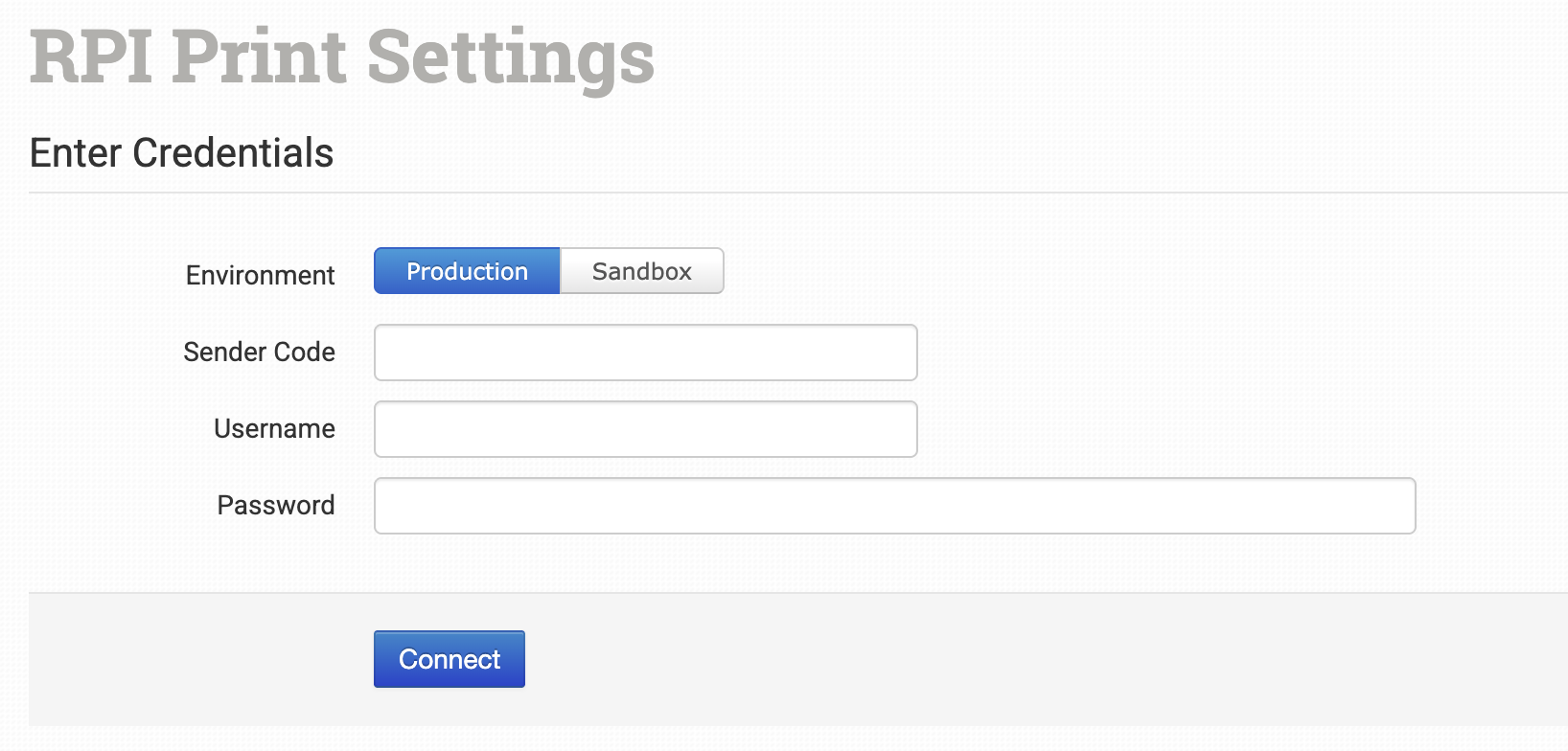 Choose your Environment, Enter your RPI Print credentials, then click to connect: