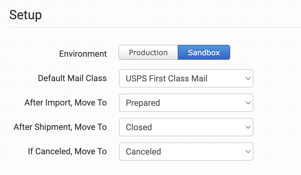 This will be set to whichever option you picked during the initial connection. Click on either Production (Live) or Sandbox (test mode) to swap environments as needed.