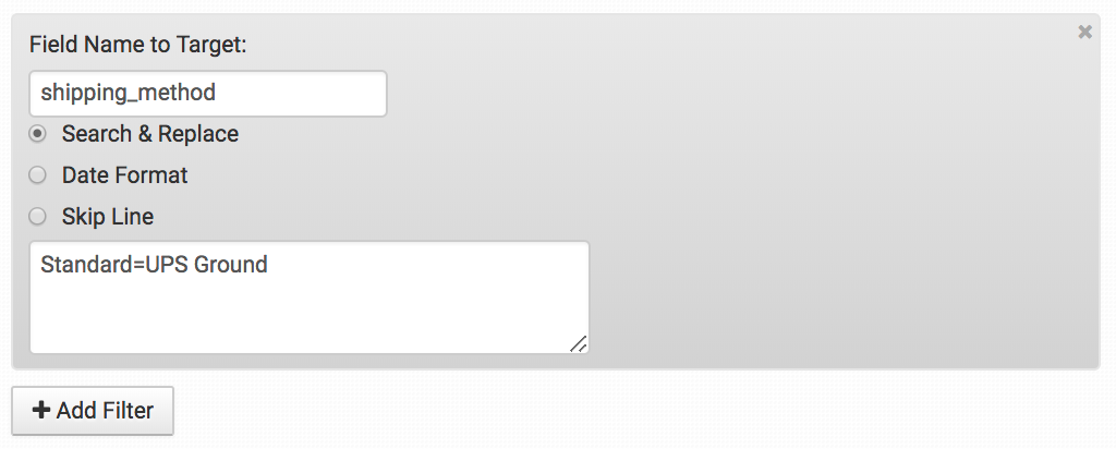 But in the exported file, you may need that to be a specific carrier and method. If so, you can change this with the Search & Replace filter targeting shipping_method: