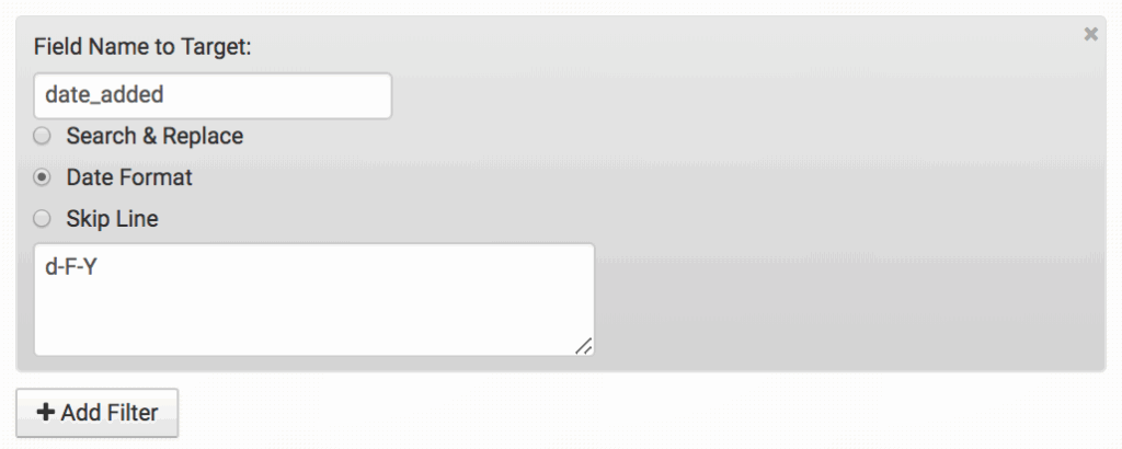 Field filters give you a little more control over what does (or doesn’t) get included with your exported files. These filters let you make some changes to your export template, such as replacing, formatting and/or skipping certain data.