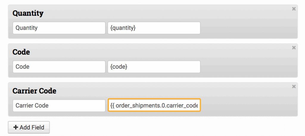 As an example, set {{ order_shipments.0.carrier_code }} in the export template to export the Carrier Code from the shipment.