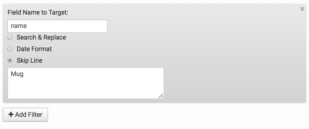 Or even a specific type of item based on the product name, for instance, skip all products named Mug: