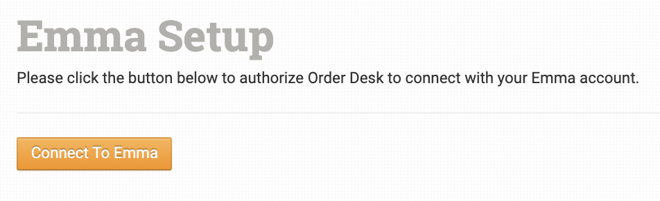 Click the Connect To Emma button and login to your Emma account to give Order Desk access.