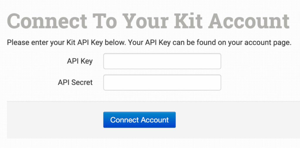 Enter your Kit API Key and click to connect.
