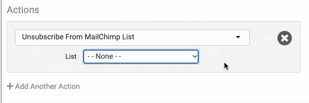 Use this action to select which Mailchimp list you’d like orders to be unsubscribed from to as they import.