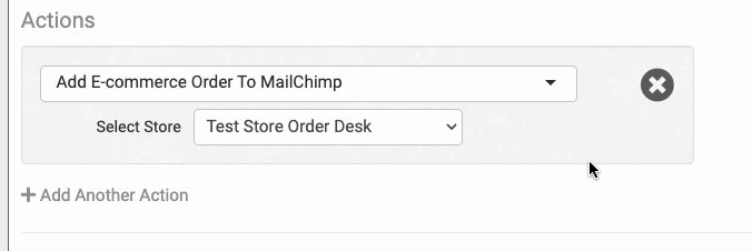 Use this action to select which Mailchimp store you’d like orders to be added to as they import. If using this rule, the Auto Add Order integration setting must be set to None.