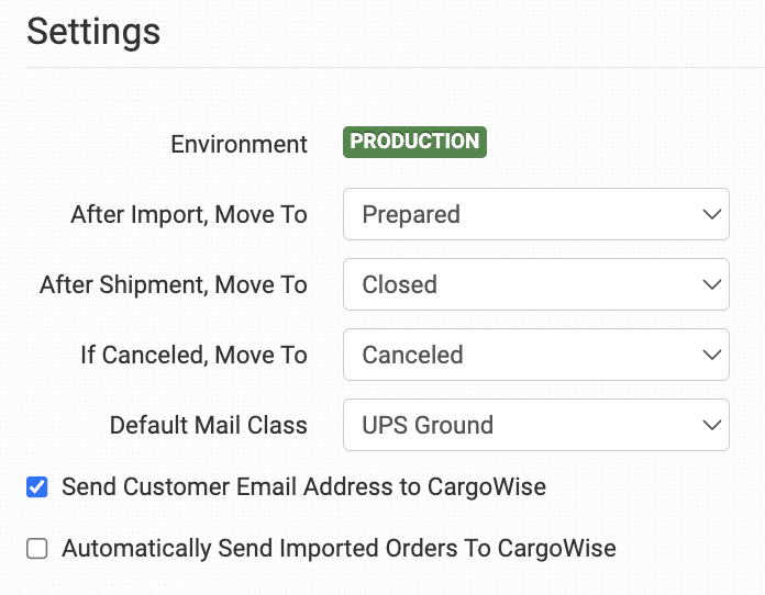 For more information on what these product settings in the CargoWise integration are for and how to use them, read the Fulfillment Integration Product Settings guide.