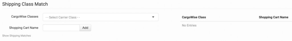 To tell CargoWise what methods you want them to use, you will need to match your method names to theirs. This can be done in the shipping class match section. For detailed instructions on setting this up, please read through the shipping class match guide.