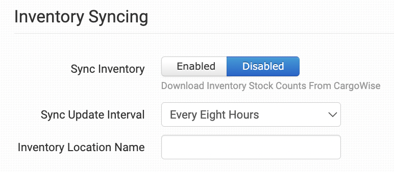 If Sync Inventory is enabled, select the interval you would like Order Desk to pull in inventory updates from CargoWise.