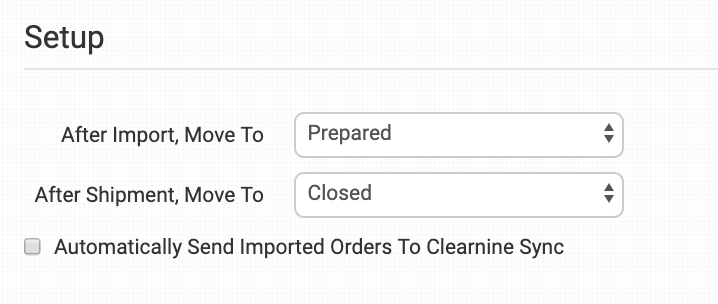 Select this setting only if all orders will be sent to Clearnine. If any orders will not be sent, or if you need a delay between when an order is imported into Order Desk and when it is sent to Clearnine do not select this.