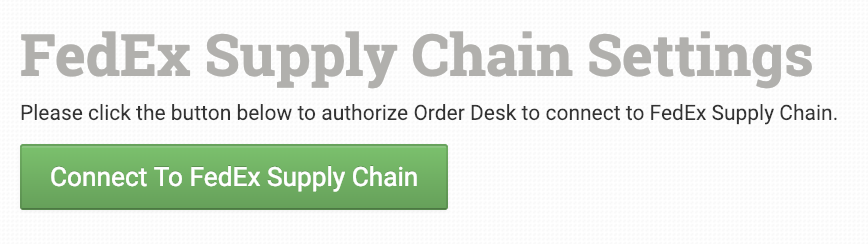 Once enabled, click the Connect To FedEx Supply Chain button. This will take you to FedEx to login to your account and create the connection to Order Desk.