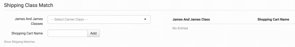 If you need to apply specific methods for certain orders, match your method names to James and James’ names in the Shipping Class Match section below.
