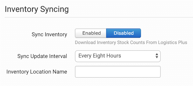Enable if you want your inventory stock counts to be pulled in from Logistics Plus.