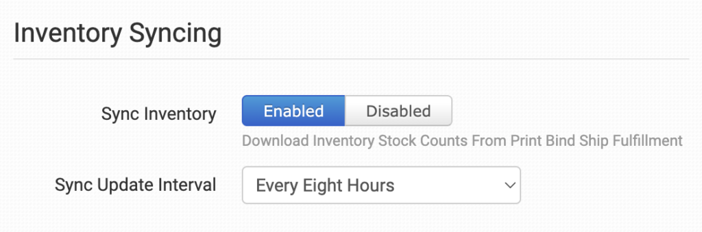 Enable if you want your inventory stock counts to be pulled in from Print Bind Ship.