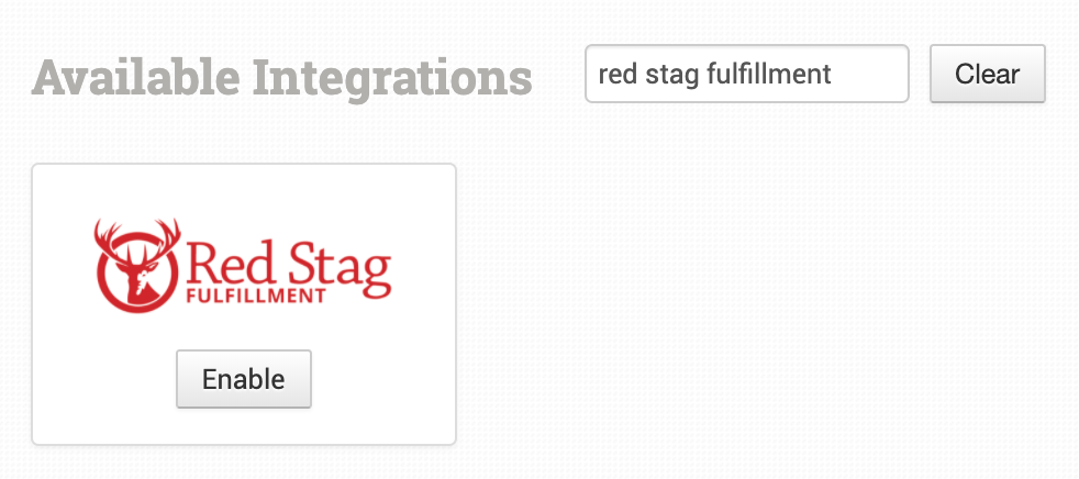 Alternatively, search for Red Stag Fulfillment from the available integration search.