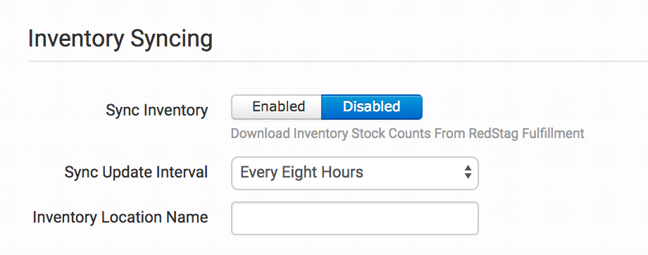 By default, inventory updates will add Red Stag Fulfillment as the location name on each item updated. If you would like to override this to use a different name, add that here.