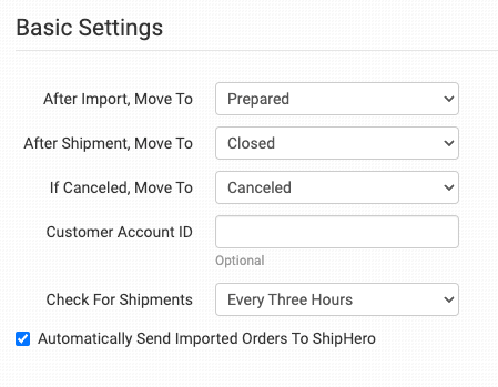 Select this setting only if all orders will be sent to ShipHero. If any orders will not be sent, or if you need to take action on an order after it is imported into Order Desk and before it is sent to ShipHero do not select this, and use rules to send your orders to ShipHero instead.