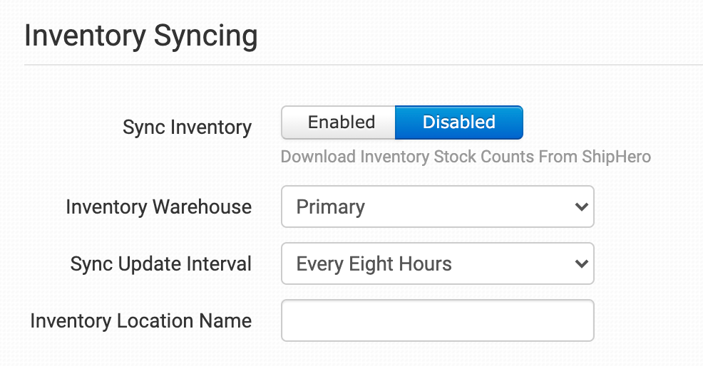 Enable if you want your inventory stock counts to be pulled in from ShipHero.