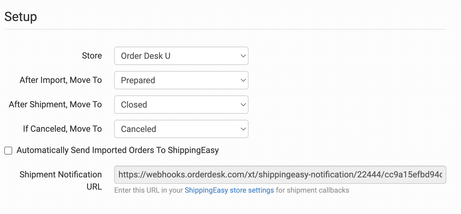 If enabled, every order added to Order Desk will automatically be sent to ShippingEasy.