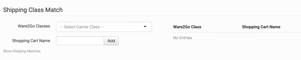 If you need to apply specific shipping methods for certain orders, match your method names to Ware2Go’s names in the Shipping Class Match section below.