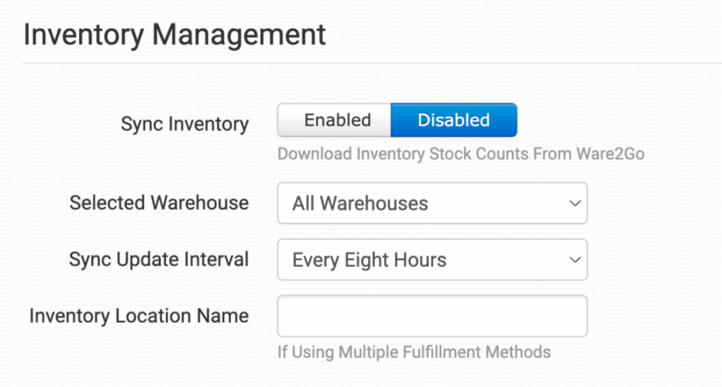 Enable this setting if you want to download inventory stock counts to Order Desk from Ware2Go.