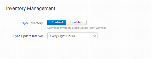 If the Sync Inventory setting is enabled, use this dropdown to select how often you’d like Order Desk to download inventory counts from Wemalo.