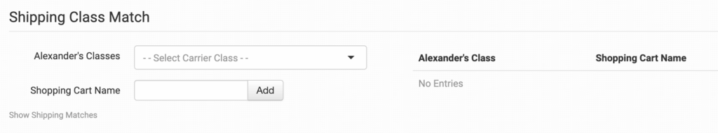 To tell Alexander’s what methods you want them to use, you will need to match your method names to theirs. This can be done in the shipping class match section. For detailed instructions on setting this up, please read through the shipping class match guide.