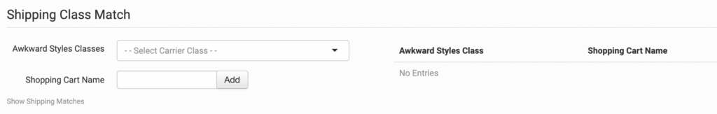 If you need Awkward Styles to use a specific shipping method on an order by order basis rather than defaulting to this setting, set your preferences in the Shipping Class Match section.