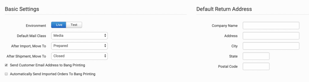 If you plan to automatically submit every order to Bang Printing for fulfillment, you can enable this setting. All orders will be sent as they come in to Order Desk.
