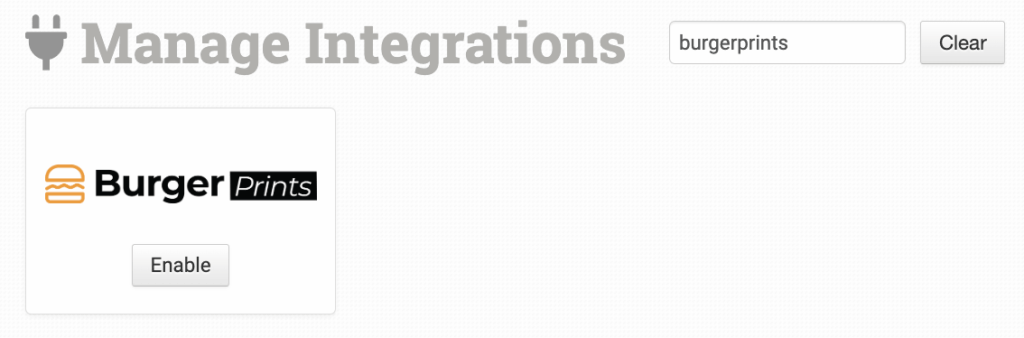 Alternatively, search for BurgerPrints from the available integrations search.