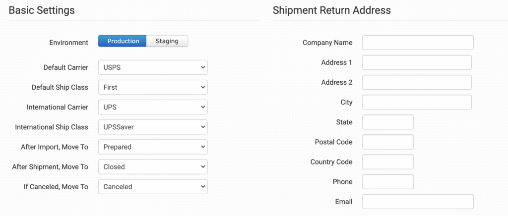 Once connected, you’ll have some shipment and integration settings to adjust per your preferences.