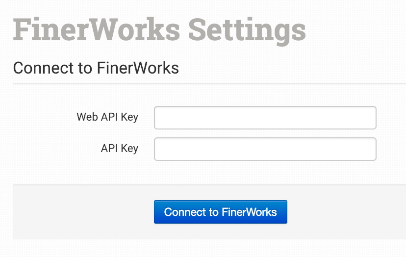 Enter the API credentials supplied to you by FinerWorks and click to connect.