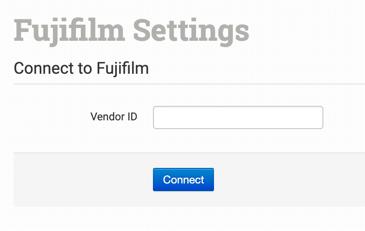 Enter your Fujifilm Vendor ID and click to connect.
