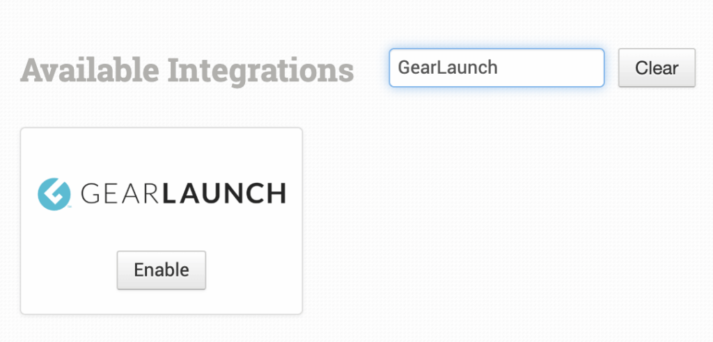 To connect to GearLaunch, click on Manage Integrations in the left sidebar. Under the Print on Demand tab, find and click to enable the GearLaunch integration.