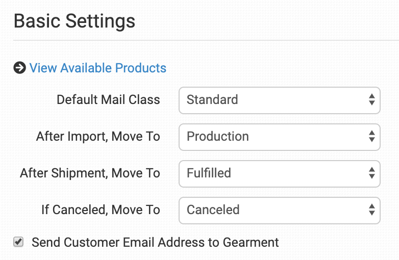For more information on what these product settings within the Gearment integration are for, please refer to the Print on Demand Product Settings guide.