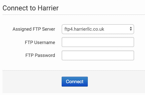 Enter your Harrier FTP credentials and click to connect.