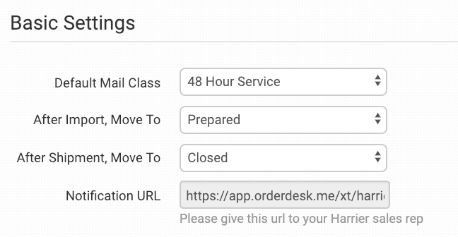 Please give this URL to your contact at Harrier. This is how they will notify Order Desk with tracking information as they ship your orders.