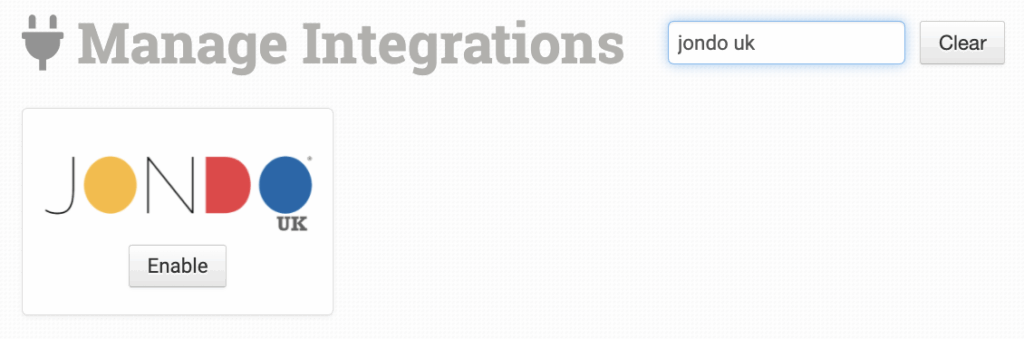 Alternatively, find and enable JONDO UK from the available integration search.