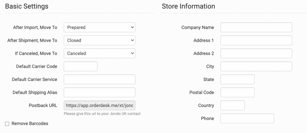When you receive your API connection details from JONDO, enter them in Order Desk.